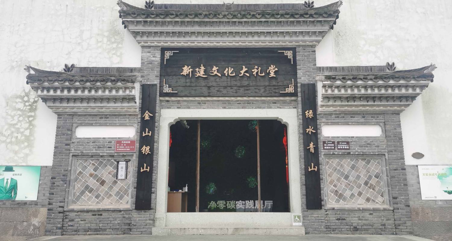 新建文化大礼堂由原村民活动室改建而成,分为上下两层,面积约720平方米。根据乡村旅游主题特色和新农村建设发展需求进行布展,分为净零碳实践展厅和领导关怀展厅。
